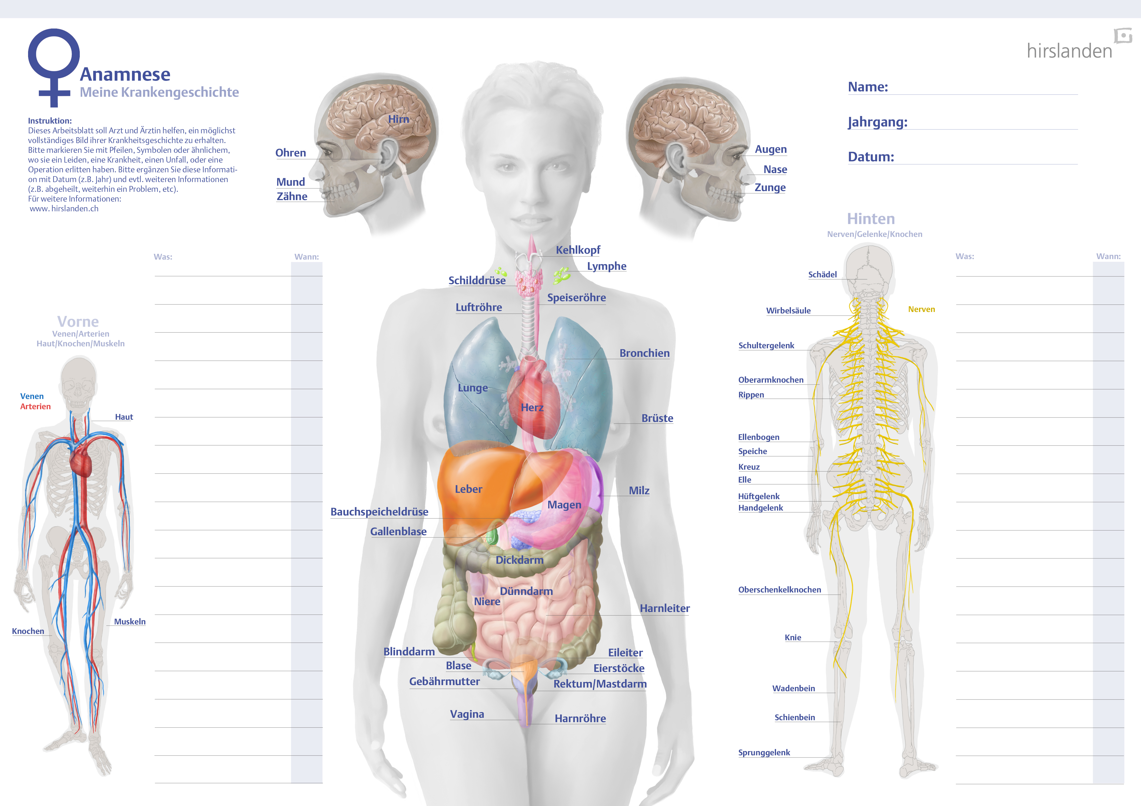 The anamnesis tool was commissioned by the Hirslanden Clinic and offers the patient an overview of the human body and its organ systems. Using the drawings and referring to past medical procedures and prescriptions, the patient’s medical history can be reconstructed. This provides the clinician with a comprehensive overview.