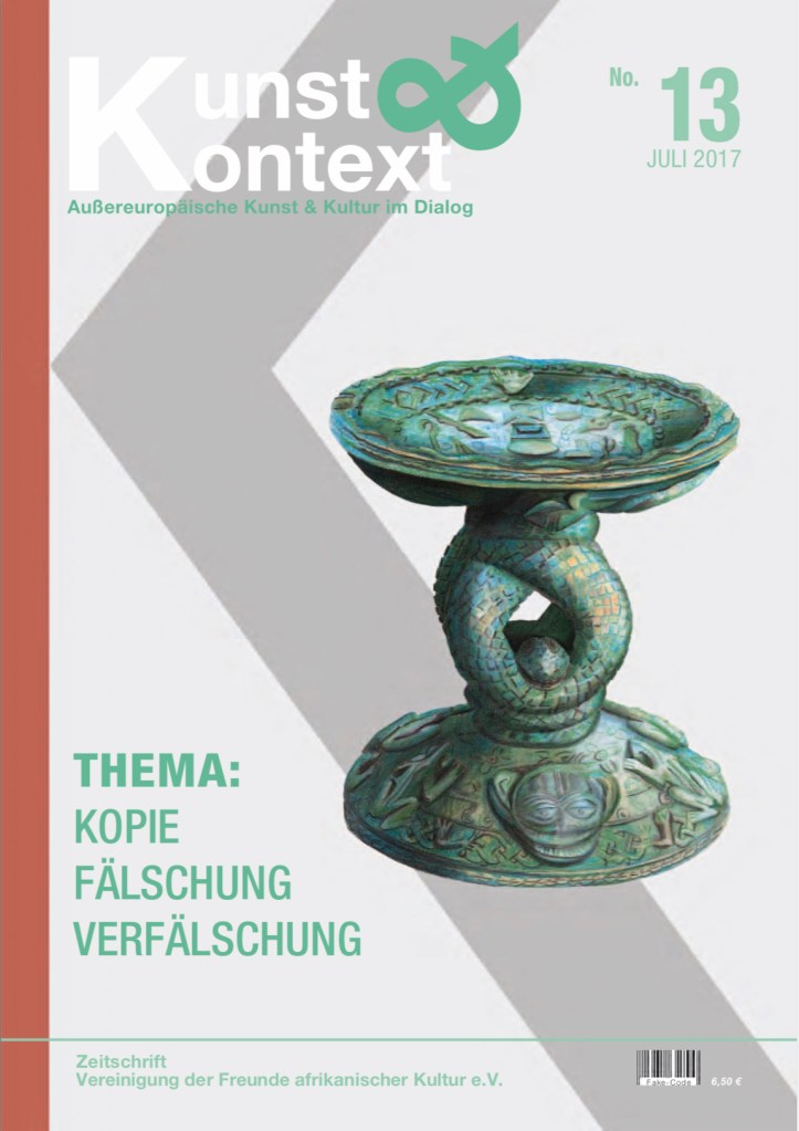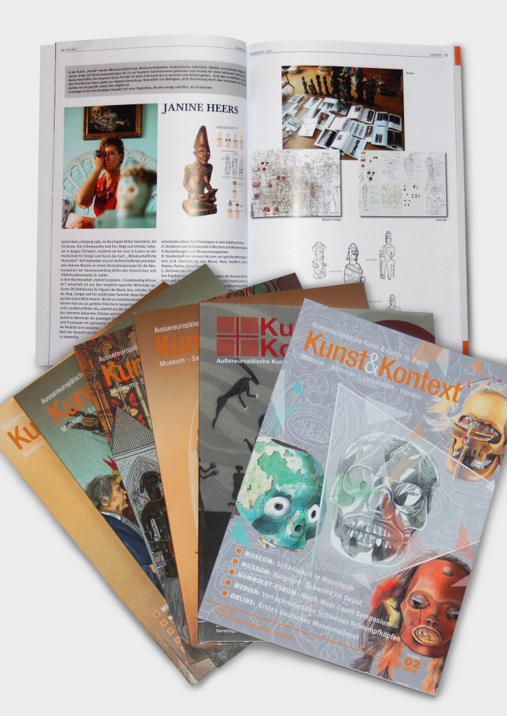 Cover illustrations for all issues of Kunst&Kontext (Germany) .The covers visualize important tribal art works. The magazine is published twice a year by the Association of Friends of African culture and the focus is primarily African, Oceanic and South American tribal art.