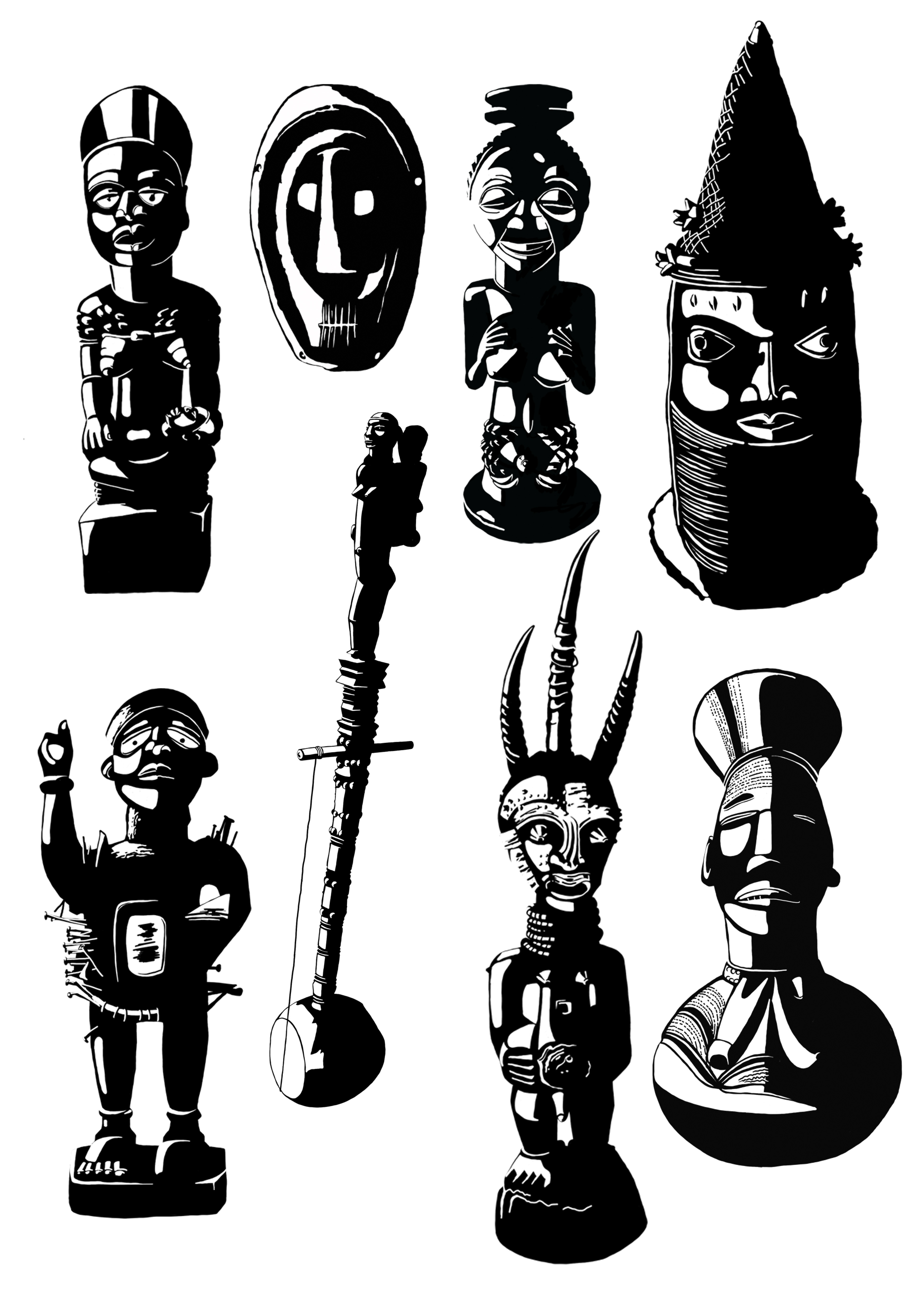For this project icons were designed of artifacts from over 60 ethnic groups currently existing in the museum, those icons could then be used in signs, maps and catalogues. Additionally, two scenic representations of important exhibits in the museum showing historical daily use were illustrated. Thoughts about the exhibition design were produced in a pattern book with suggestions and ideas for using the illustrations. Furthered research on African art and the ability to creatively implement ideas for restructuring the exhibition completed the internship.
