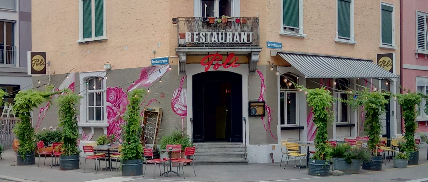 Project planning, design concept and visualization of the new façade design of Poli bar, Zurich.